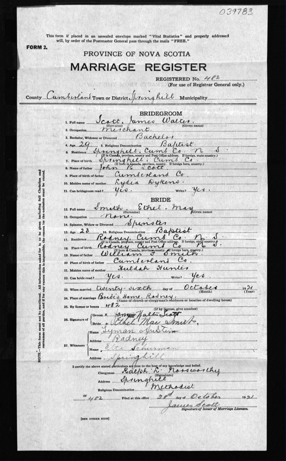 Registration: Year: 1921 number: 39783