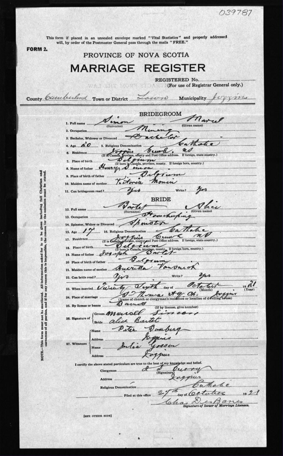Registration: Year: 1921 number: 39787
