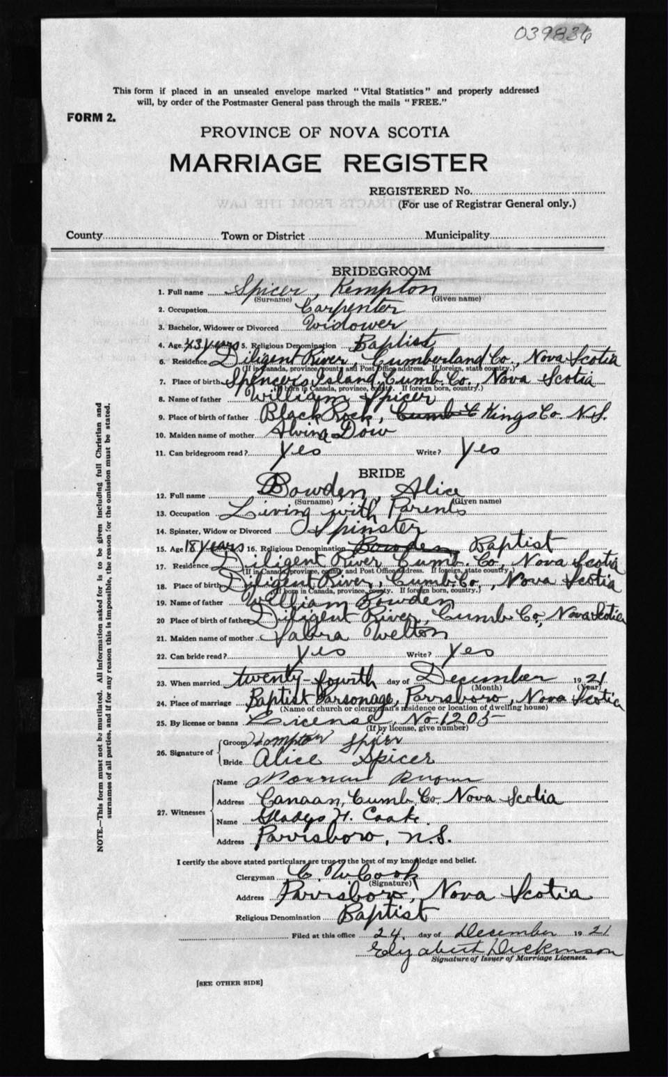 Registration: Year: 1921 number: 39836