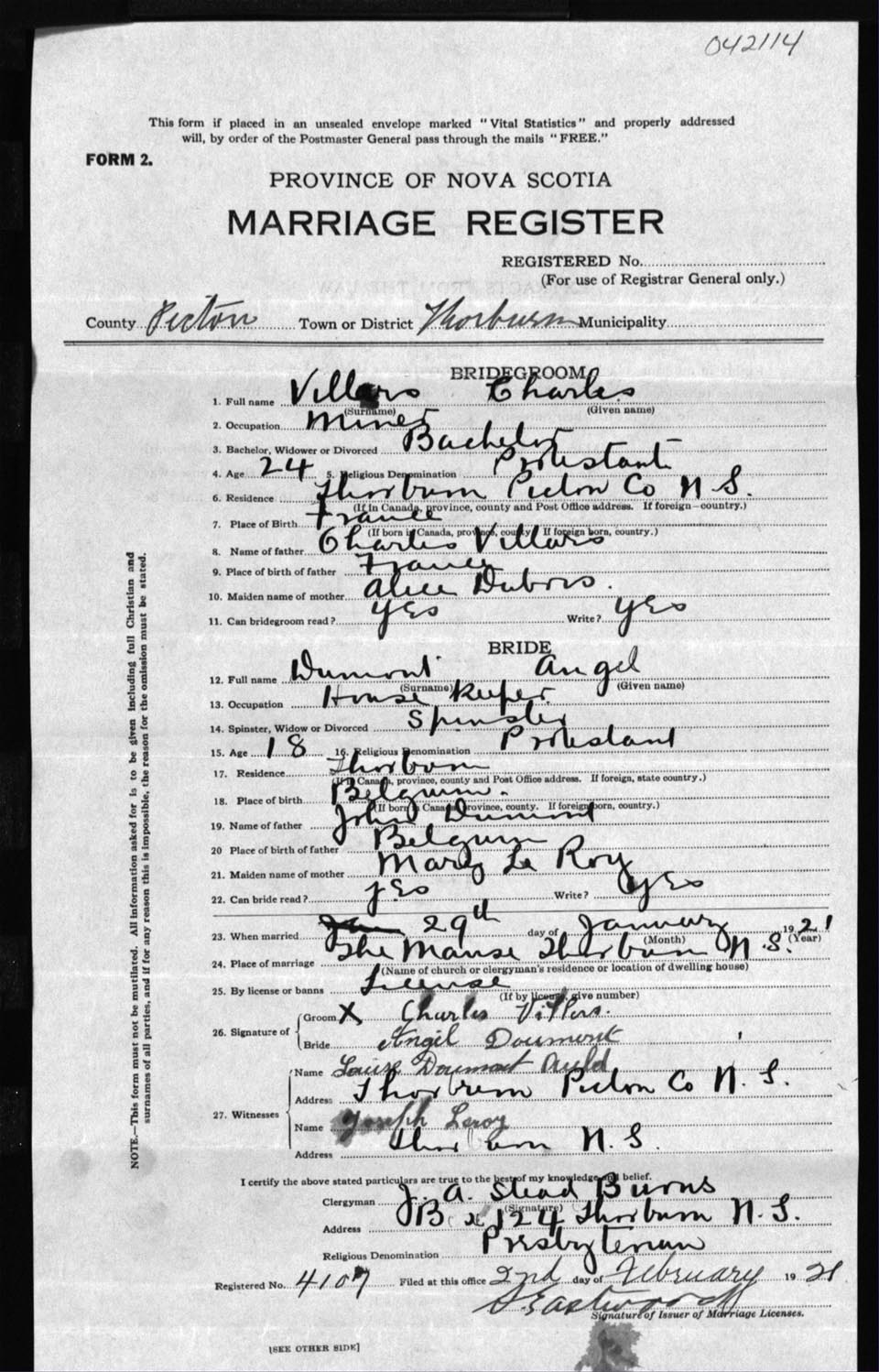Registration: Year: 1921 number: 42114