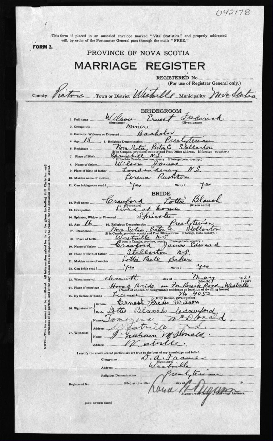 Registration: Year: 1921 number: 42178