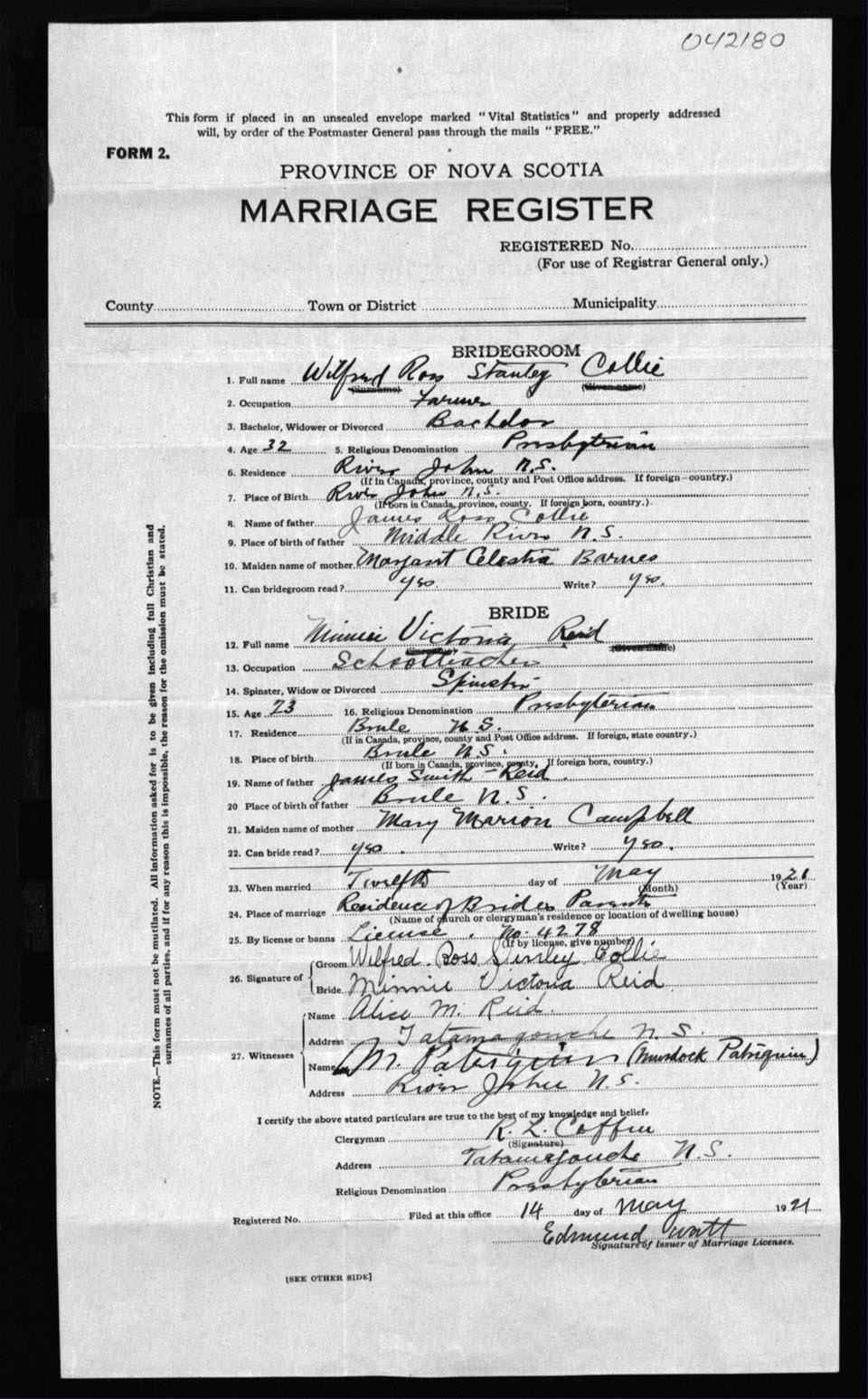 Registration: Year: 1921 number: 42180
