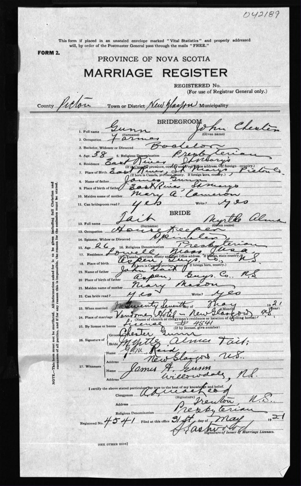 Registration: Year: 1921 number: 42189
