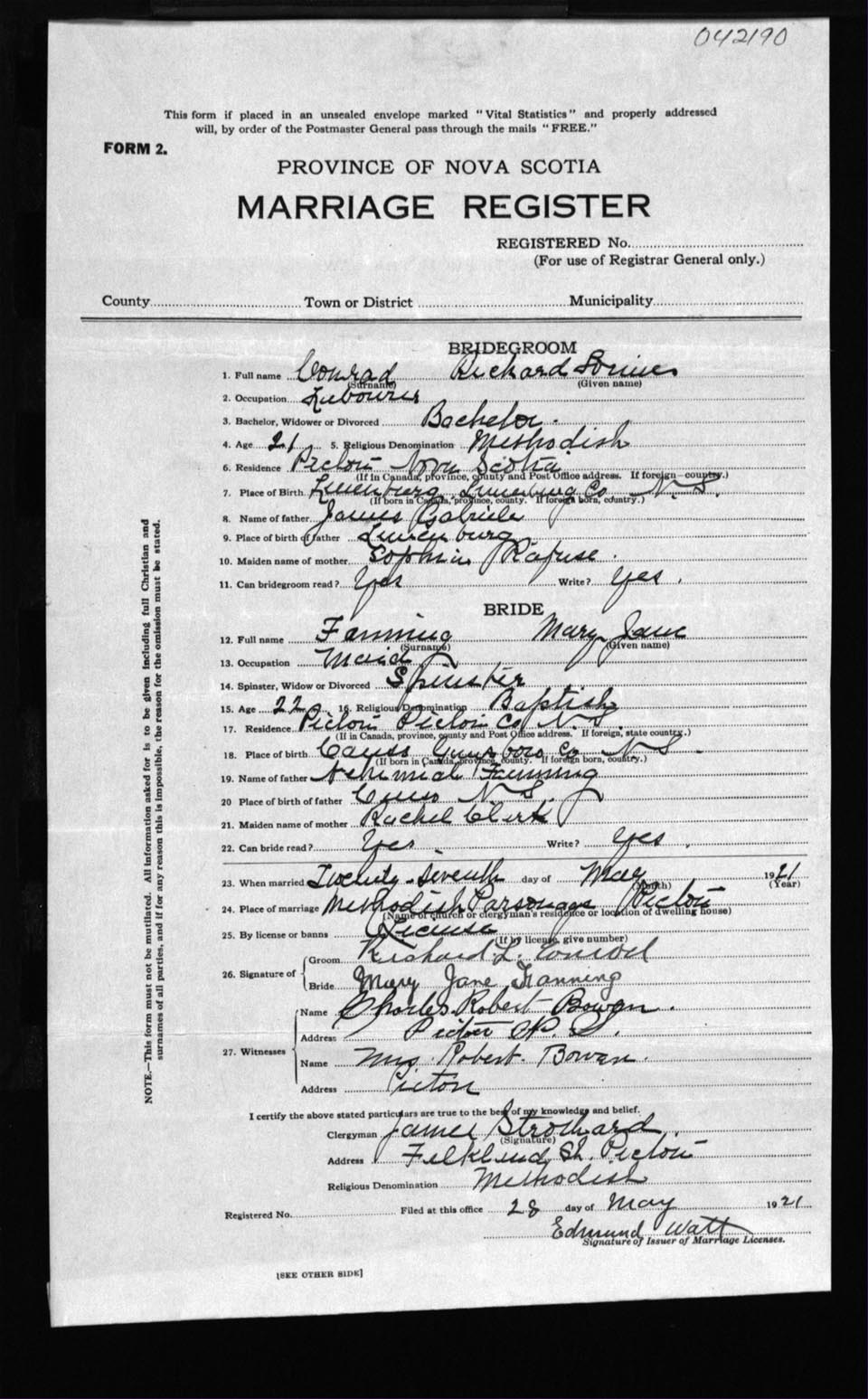 Registration: Year: 1921 number: 42190