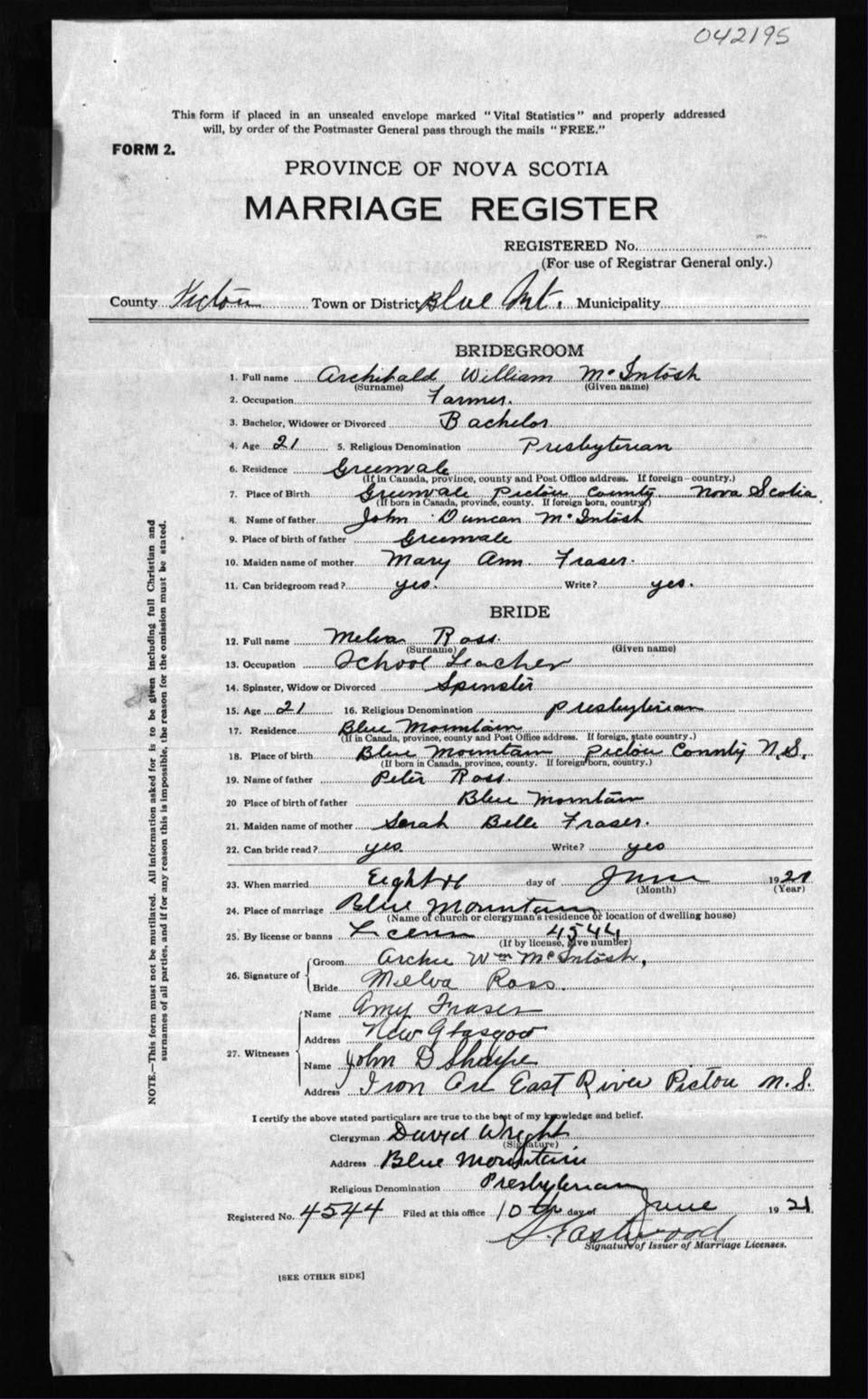 Registration: Year: 1921 number: 42195