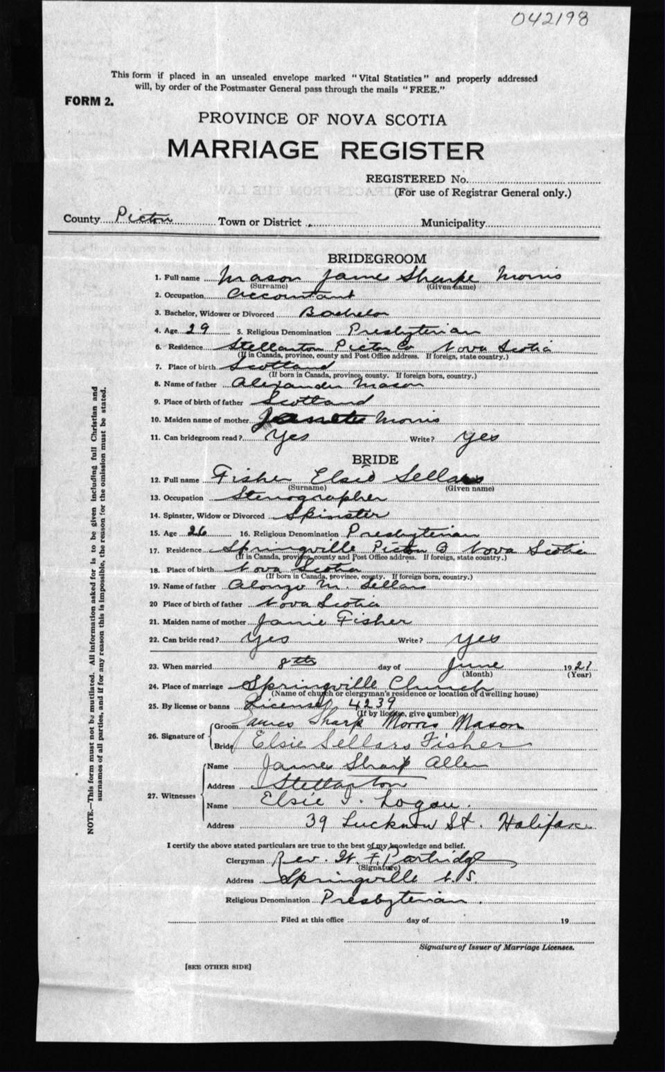 Registration: Year: 1921 number: 42198