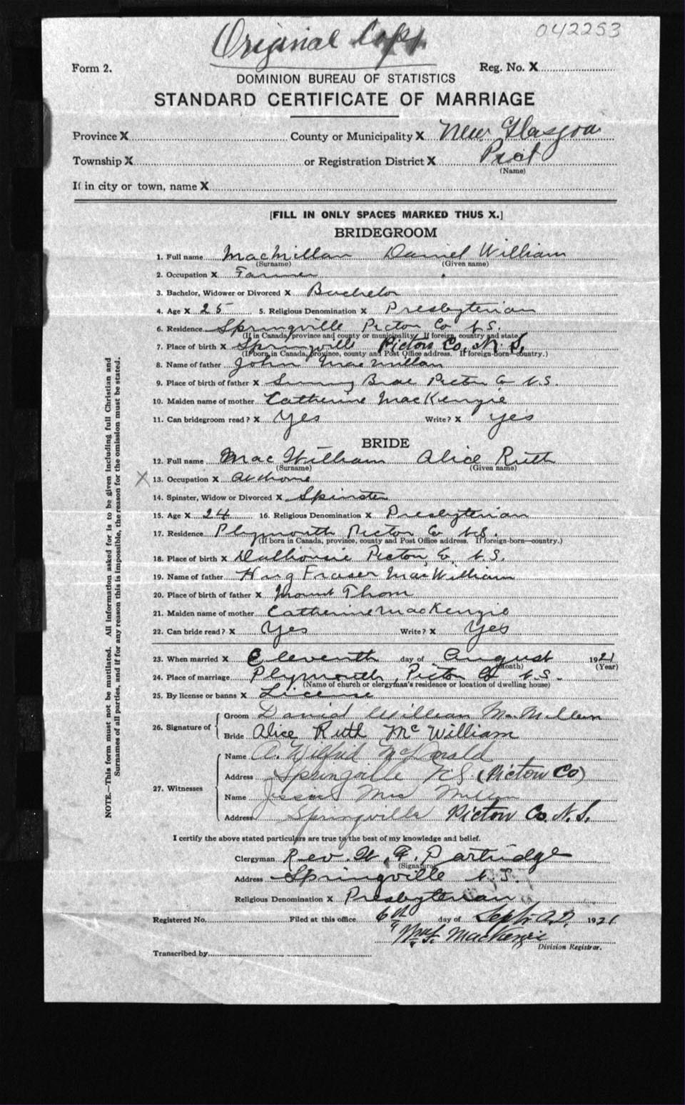 Registration: Year: 1921 number: 42253