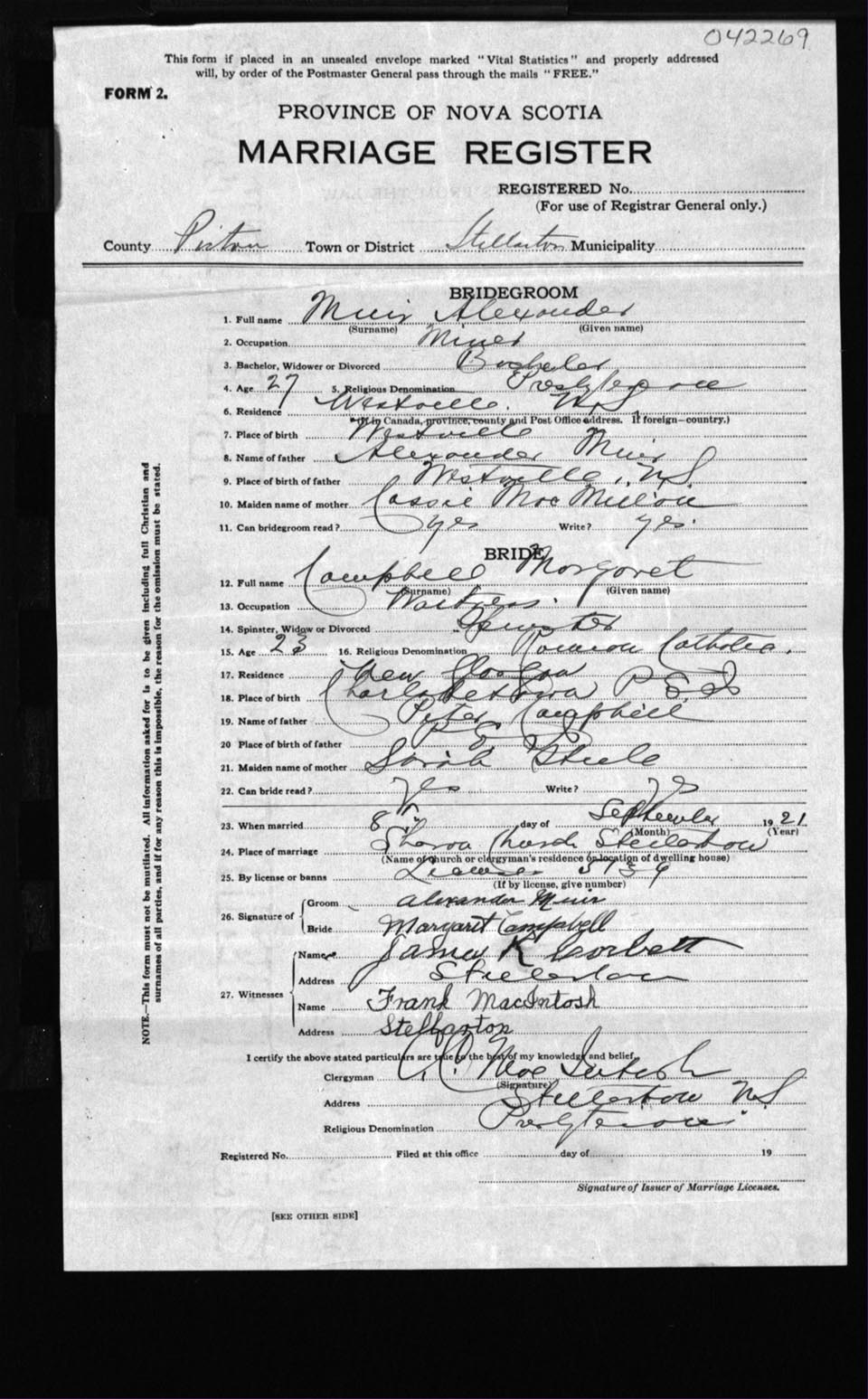 Registration: Year: 1921 number: 42269