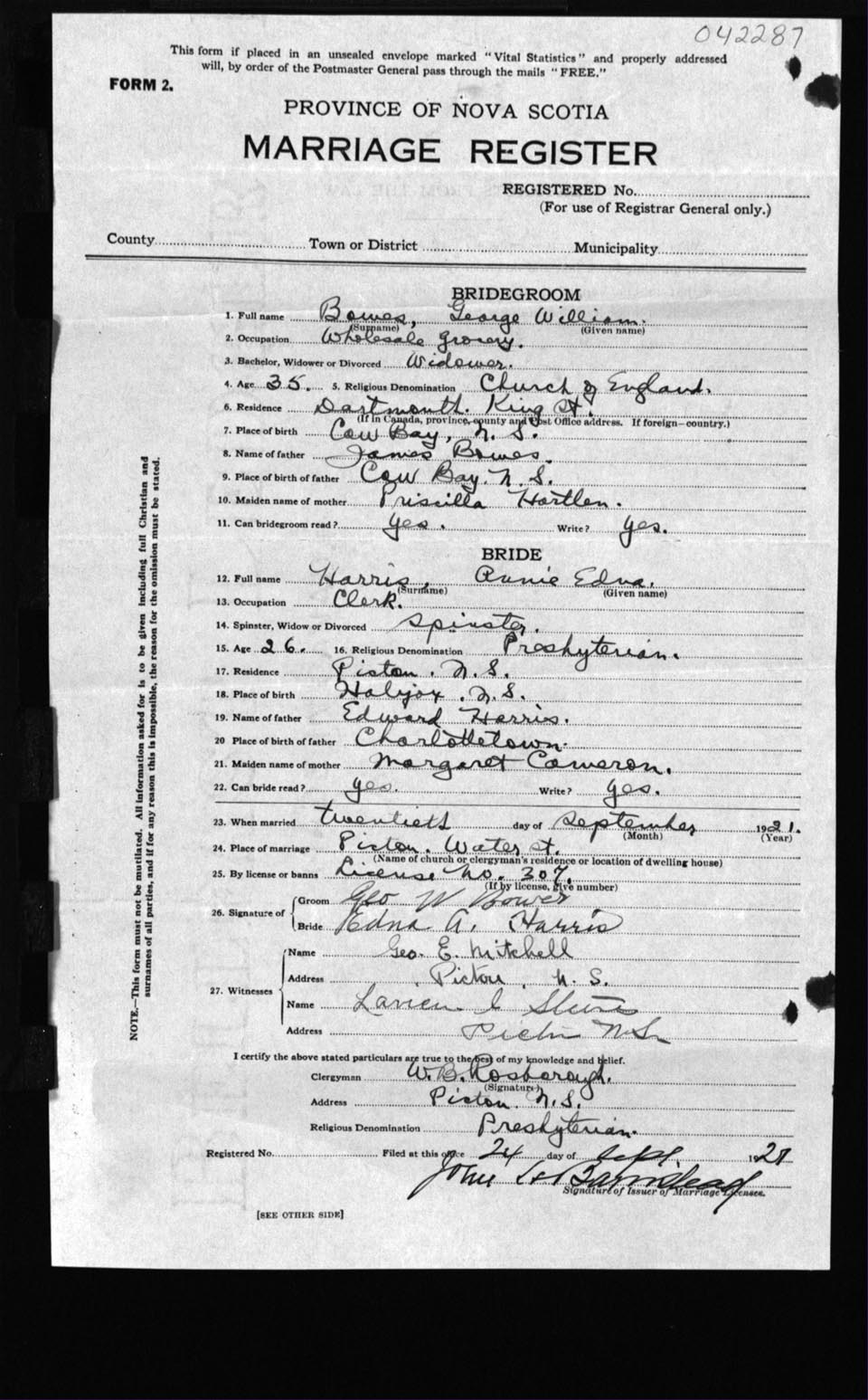 Registration: Year: 1921 number: 42287