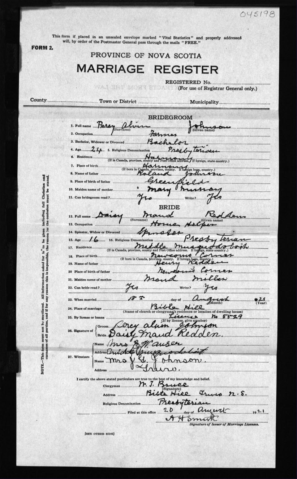 Registration: Year: 1921 number: 45198