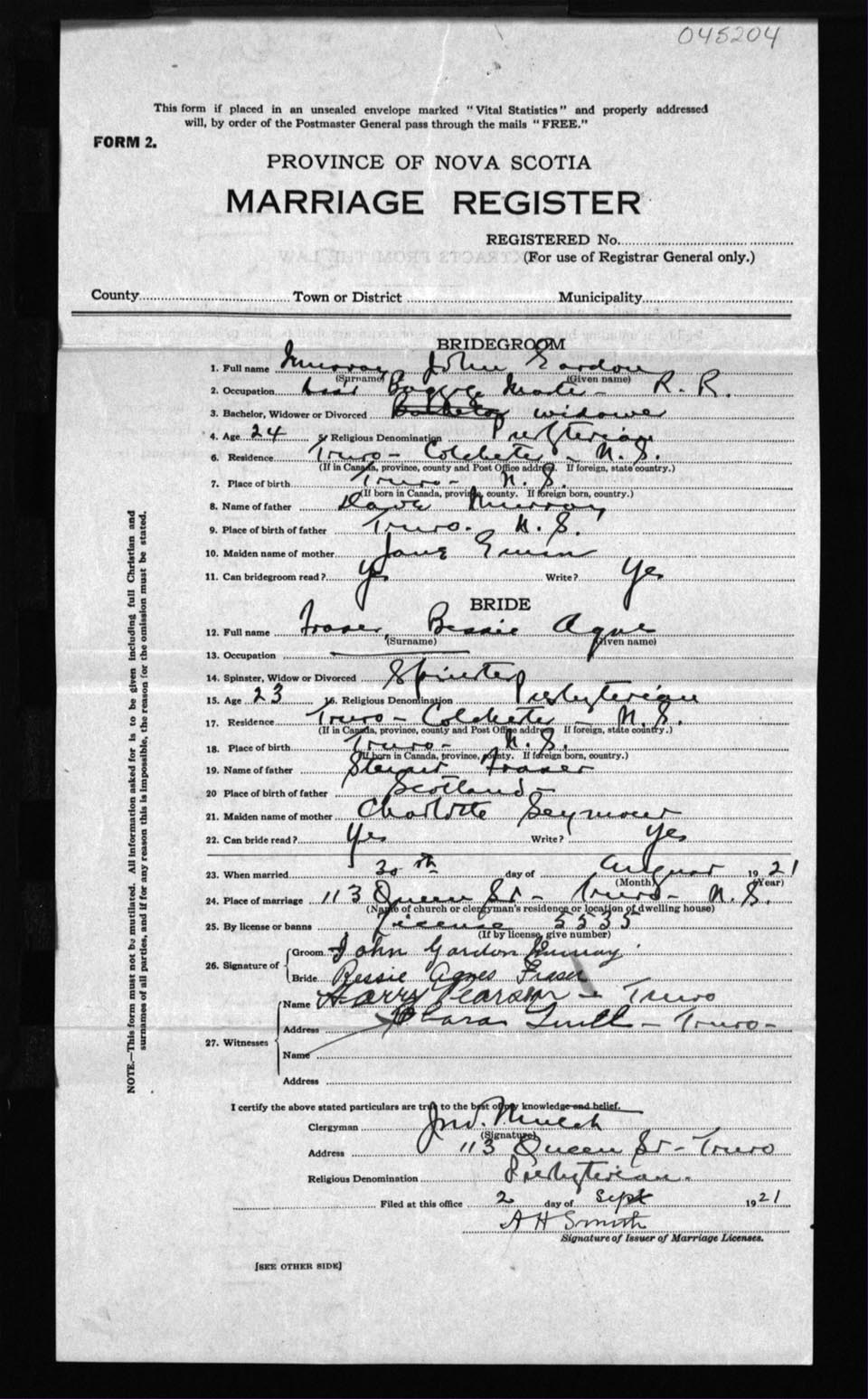 Registration: Year: 1921 number: 45204