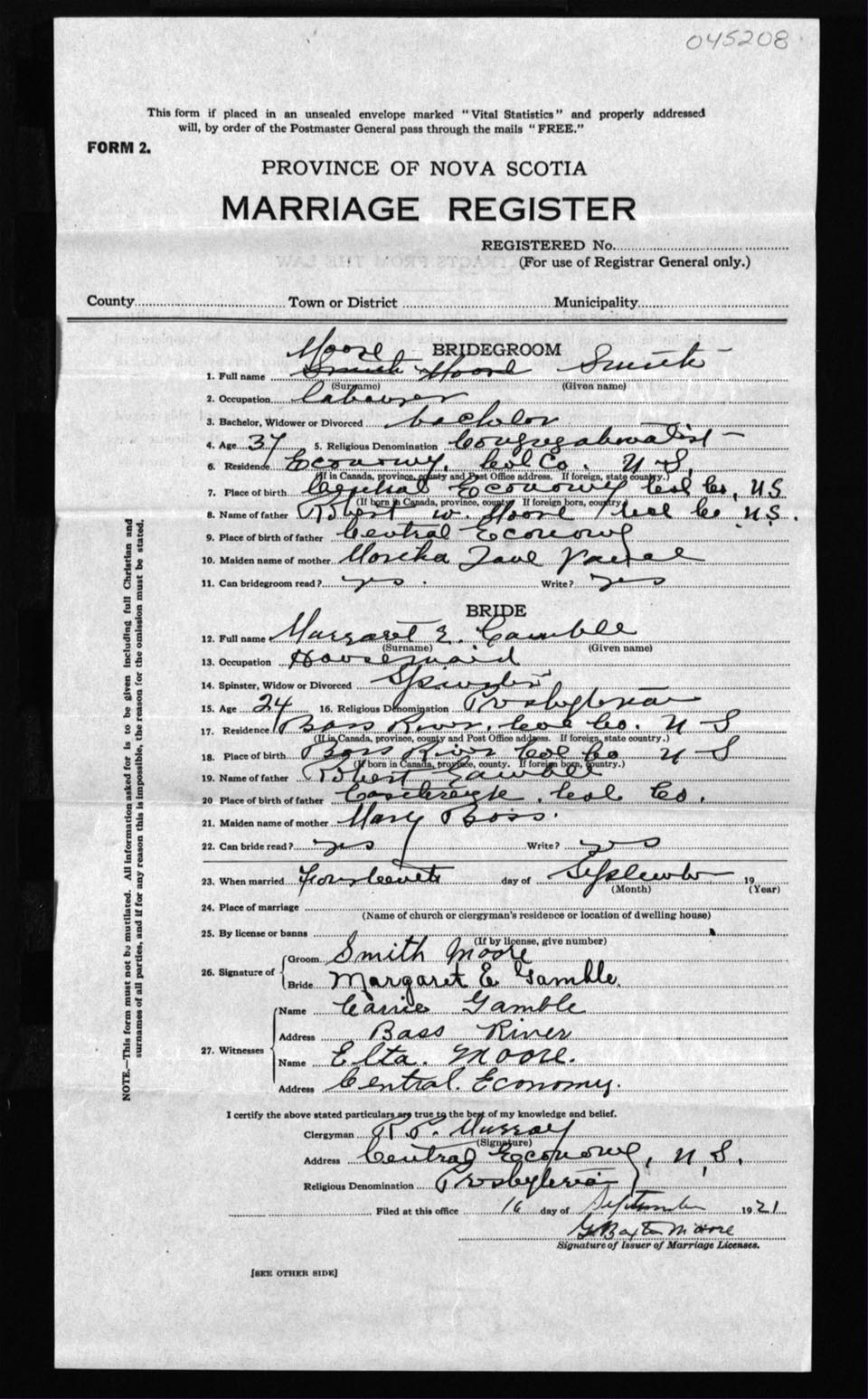 Registration: Year: 1921 number: 45208
