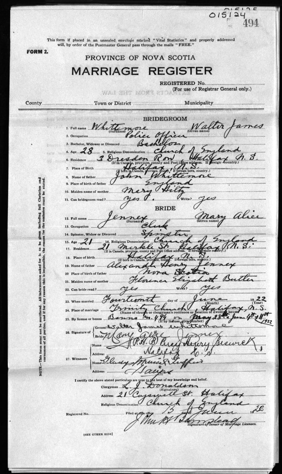 Registration: Year: 1922 number: 15124