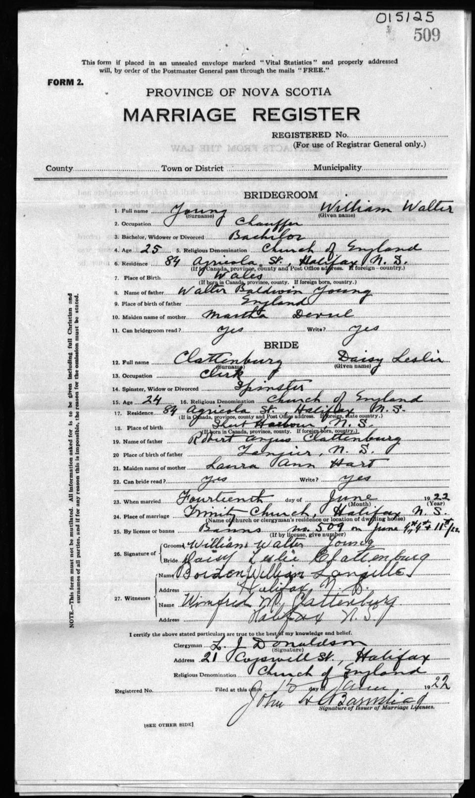 Registration: Year: 1922 number: 15125
