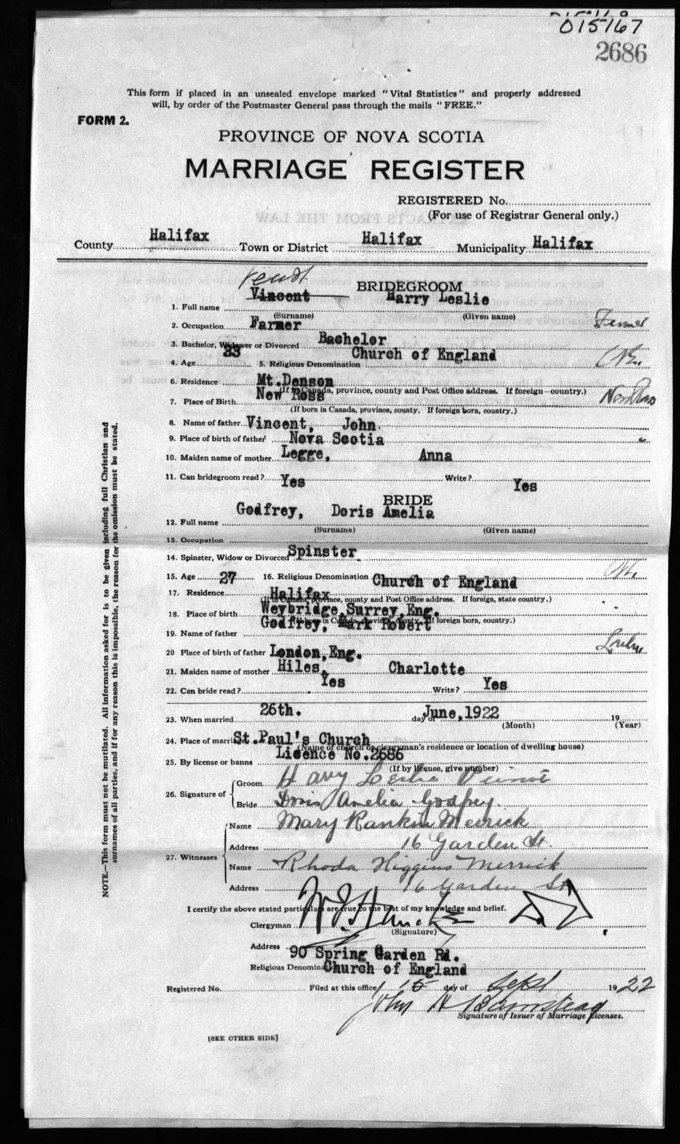 Registration: Year: 1922 number: 15167
