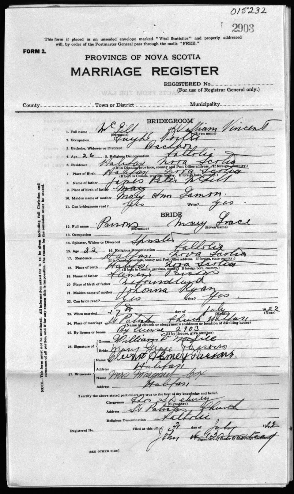 Registration: Year: 1922 number: 15232