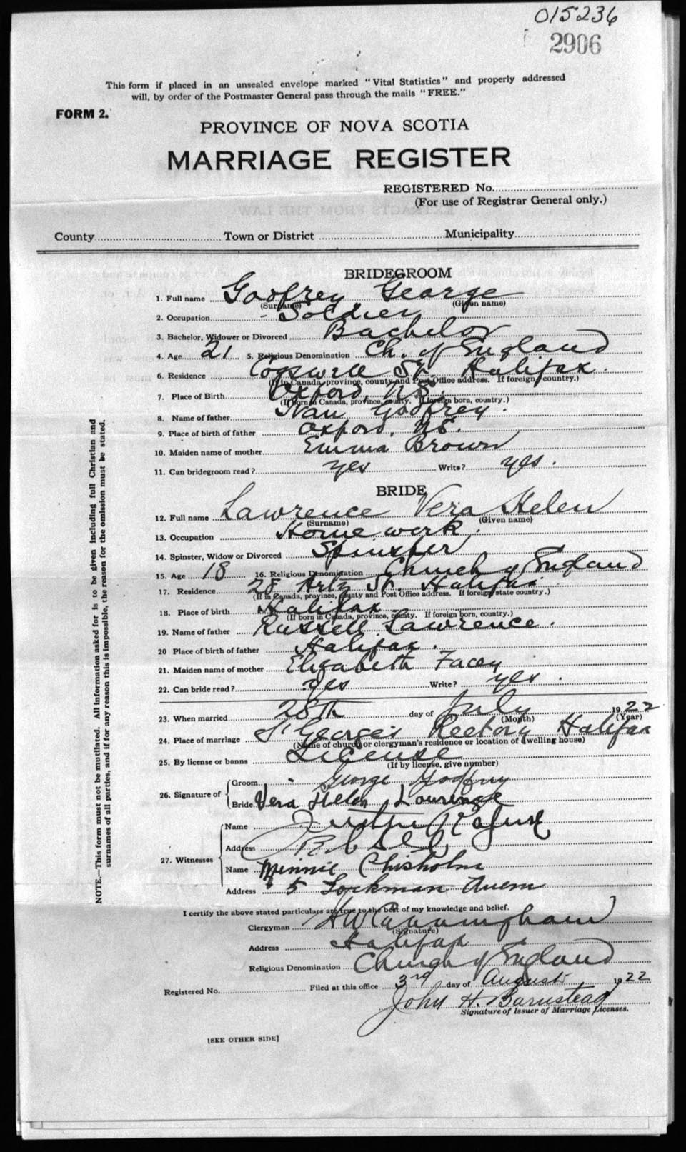 Registration: Year: 1922 number: 15236