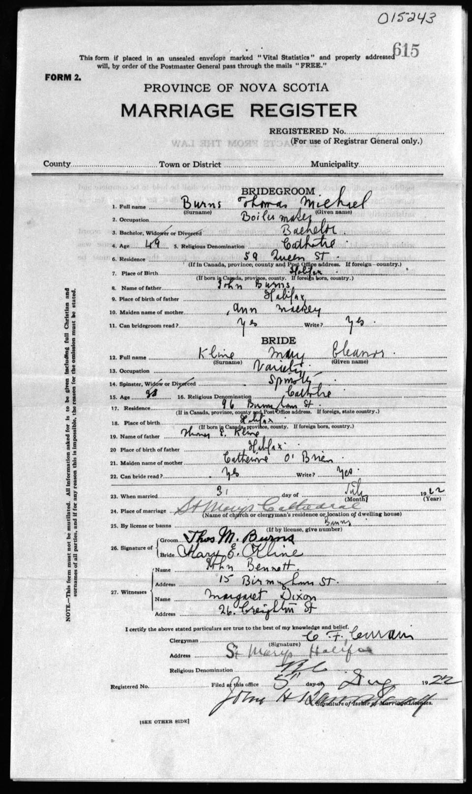 Registration: Year: 1922 number: 15243