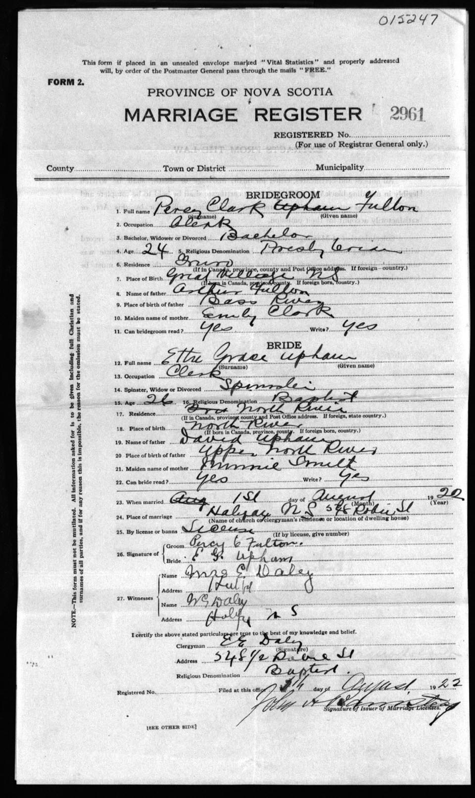 Registration: Year: 1922 number: 15247