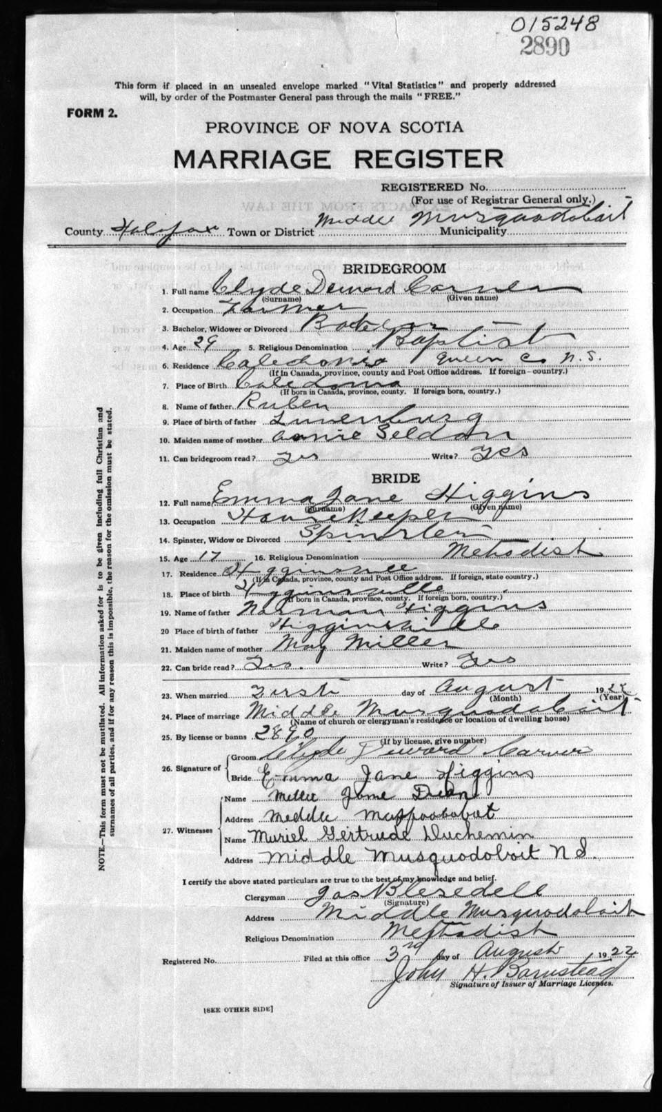 Registration: Year: 1922 number: 15248