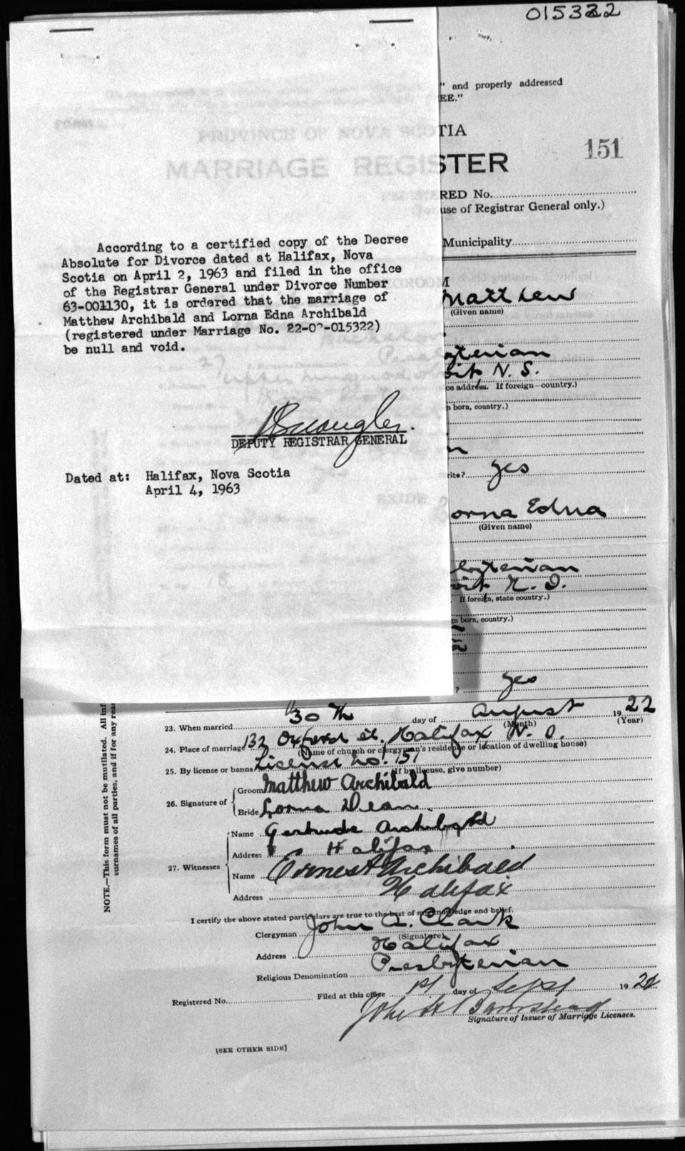 Registration: Year: 1922 number: 15322