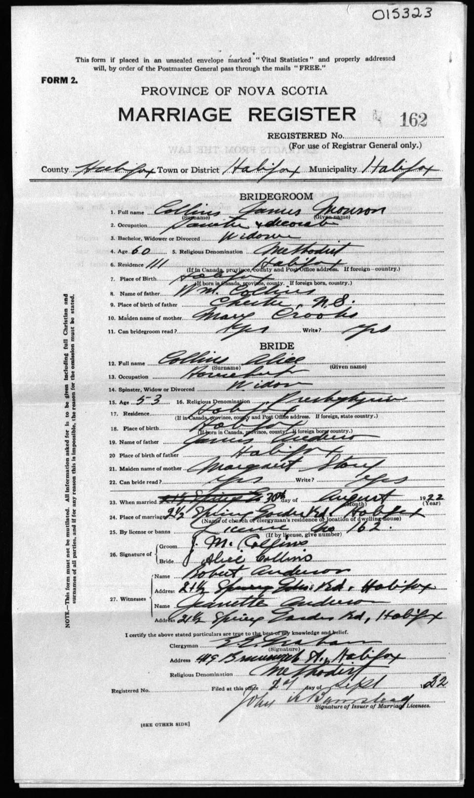 Registration: Year: 1922 number: 15323