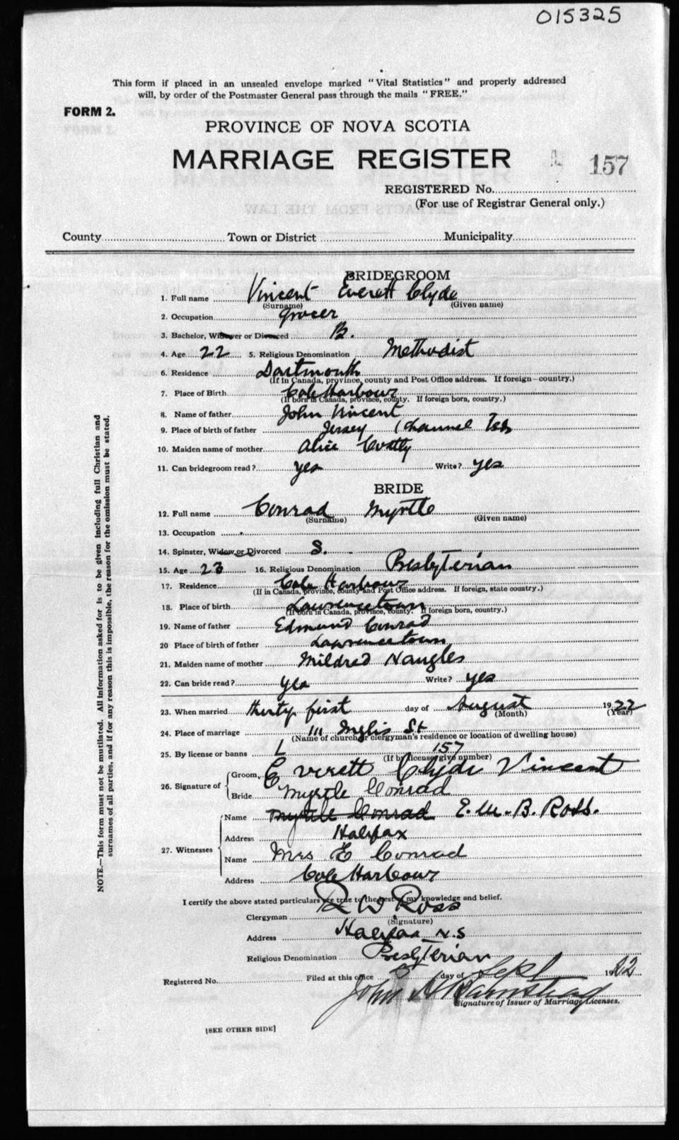 Registration: Year: 1922 number: 15325
