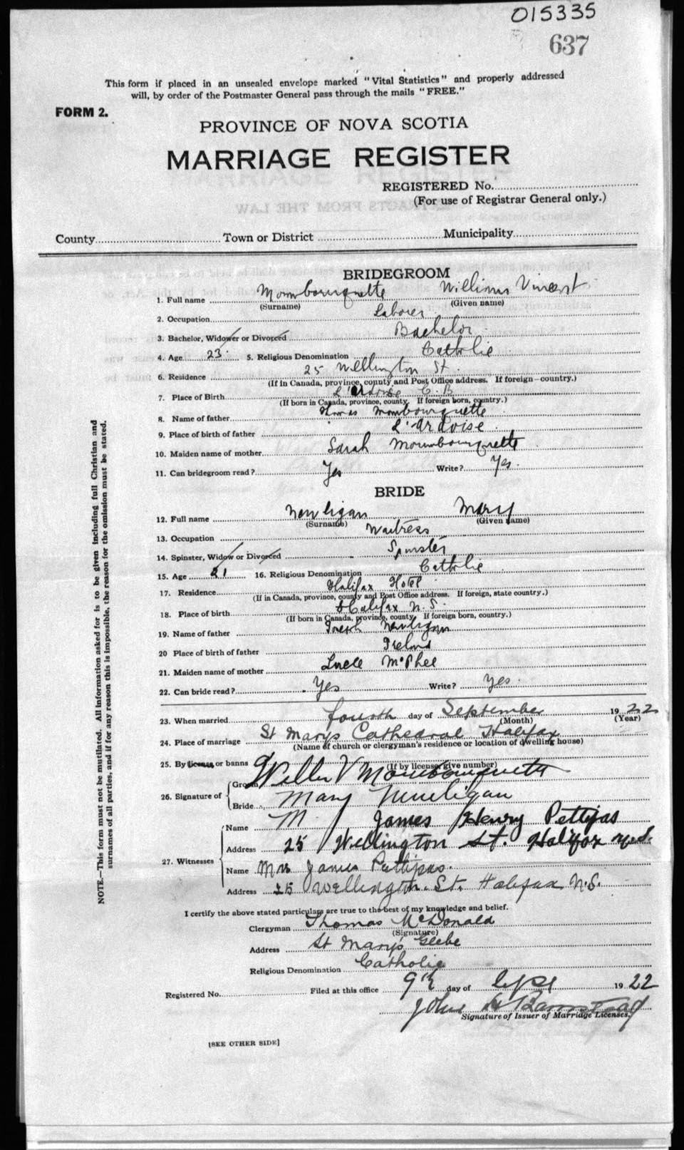 Registration: Year: 1922 number: 15335