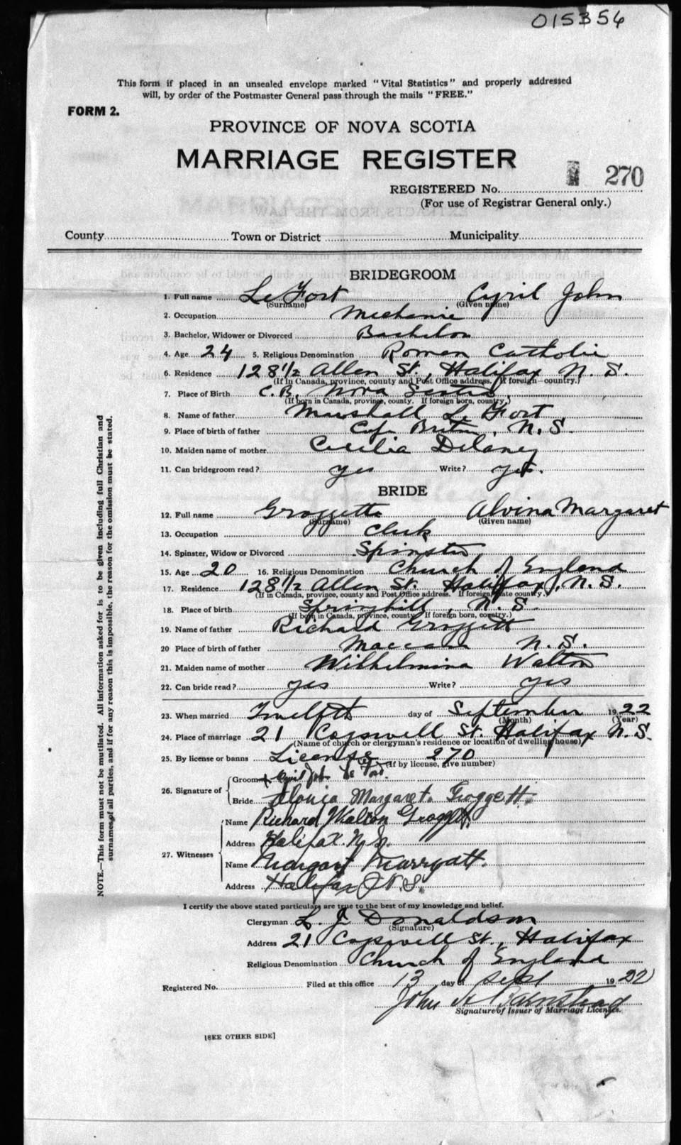 Registration: Year: 1922 number: 15356
