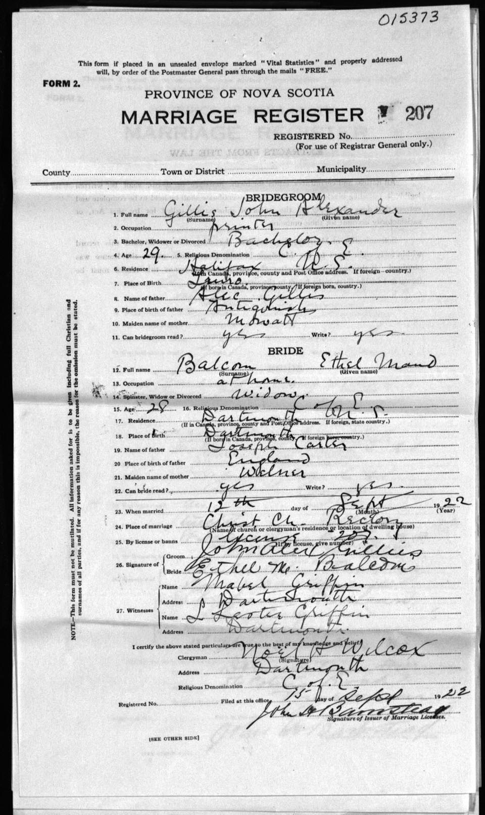 Registration: Year: 1922 number: 15373