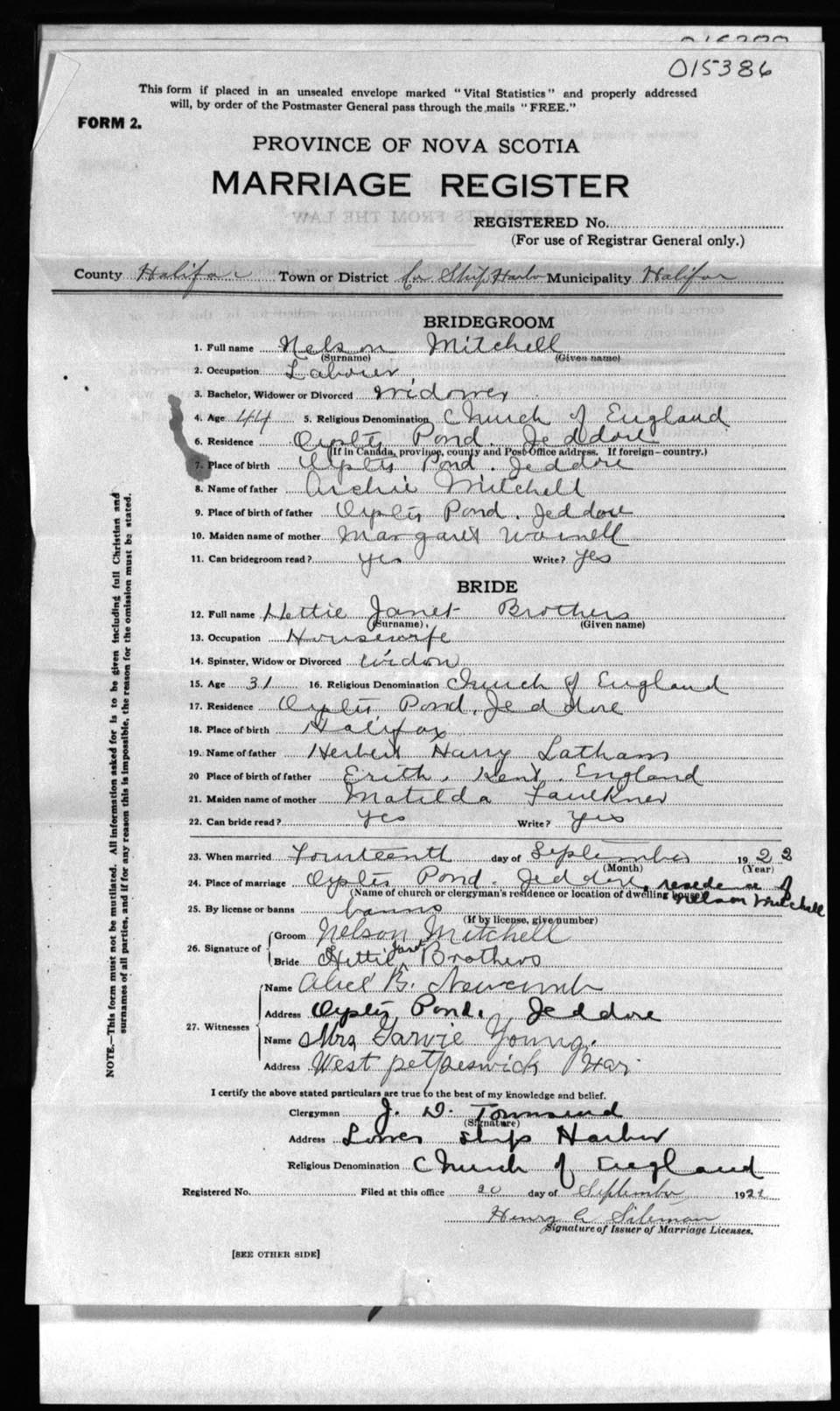 Registration: Year: 1922 number: 15386