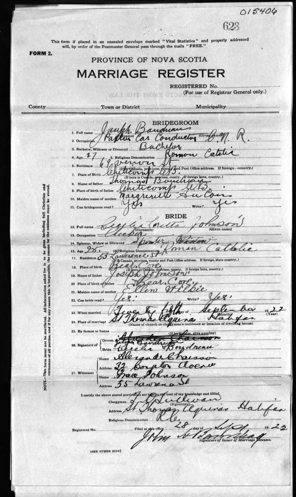 Registration: Year: 1922 number: 15406