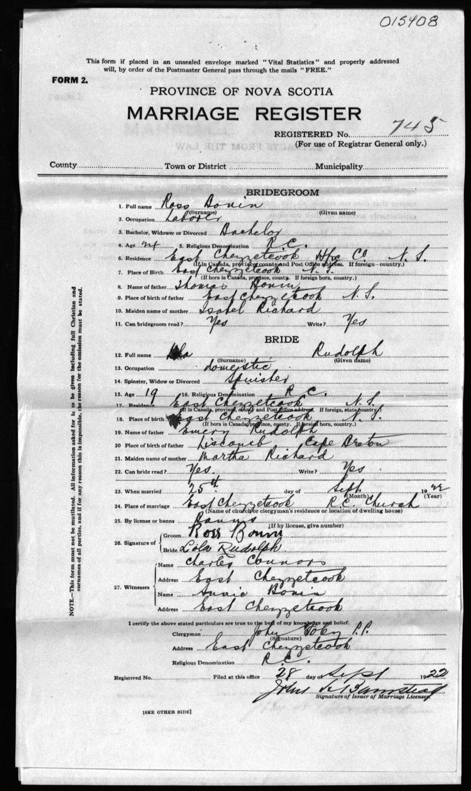 Registration: Year: 1922 number: 15408