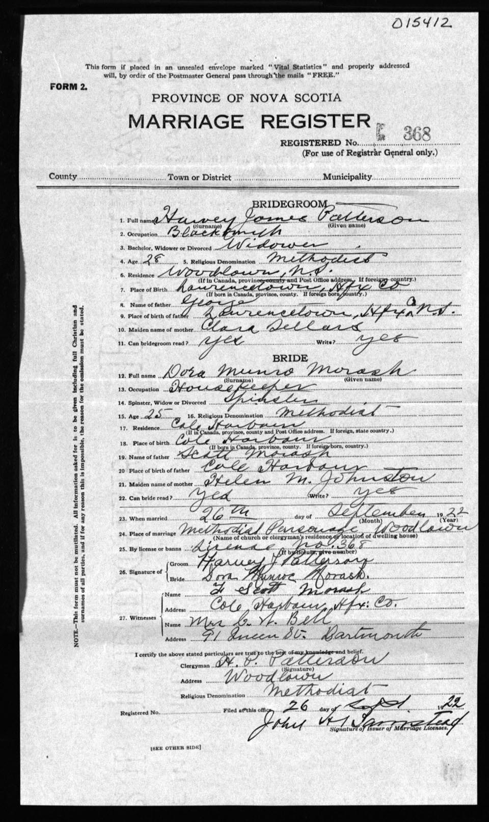 Registration: Year: 1922 number: 15412