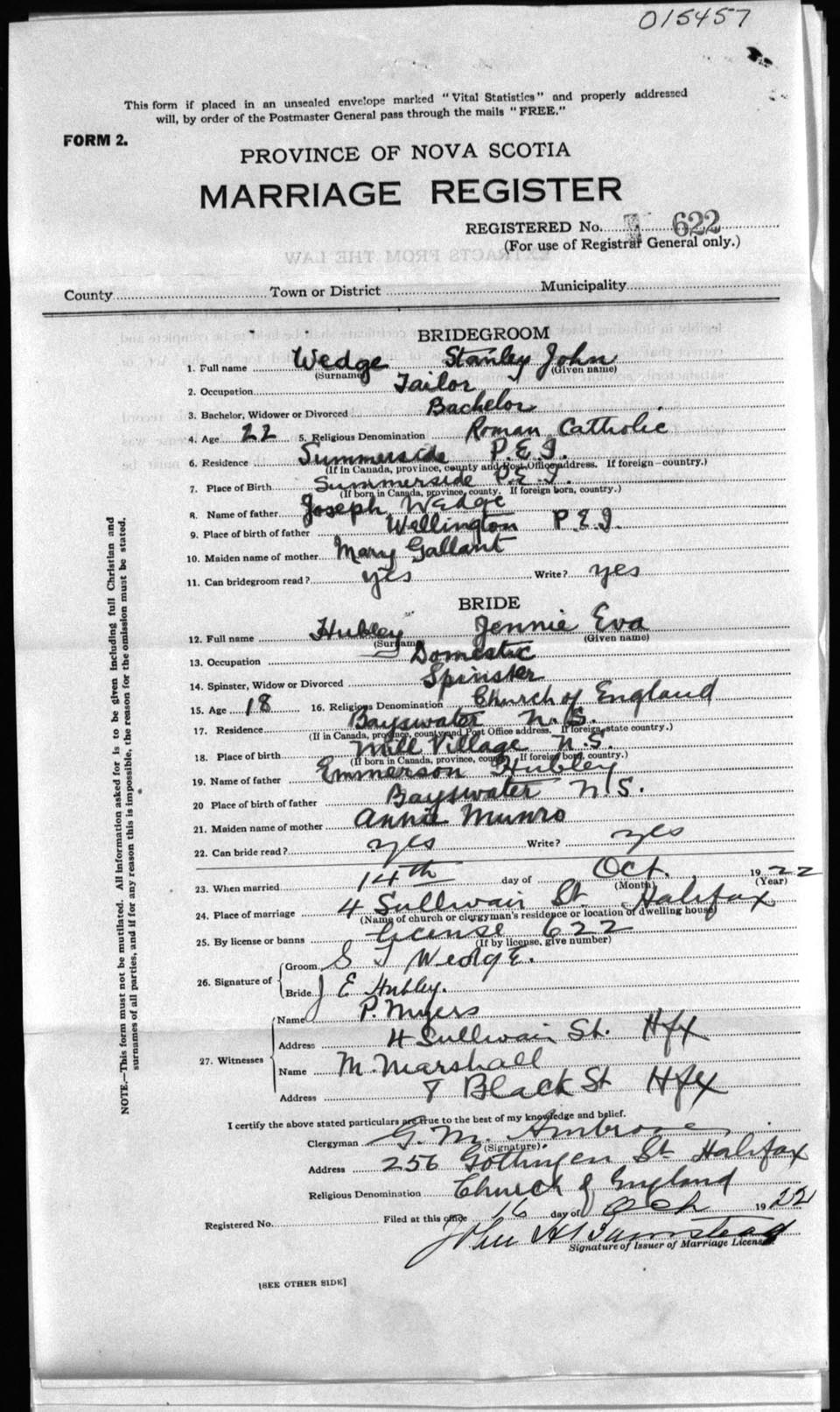 Registration: Year: 1922 number: 15457