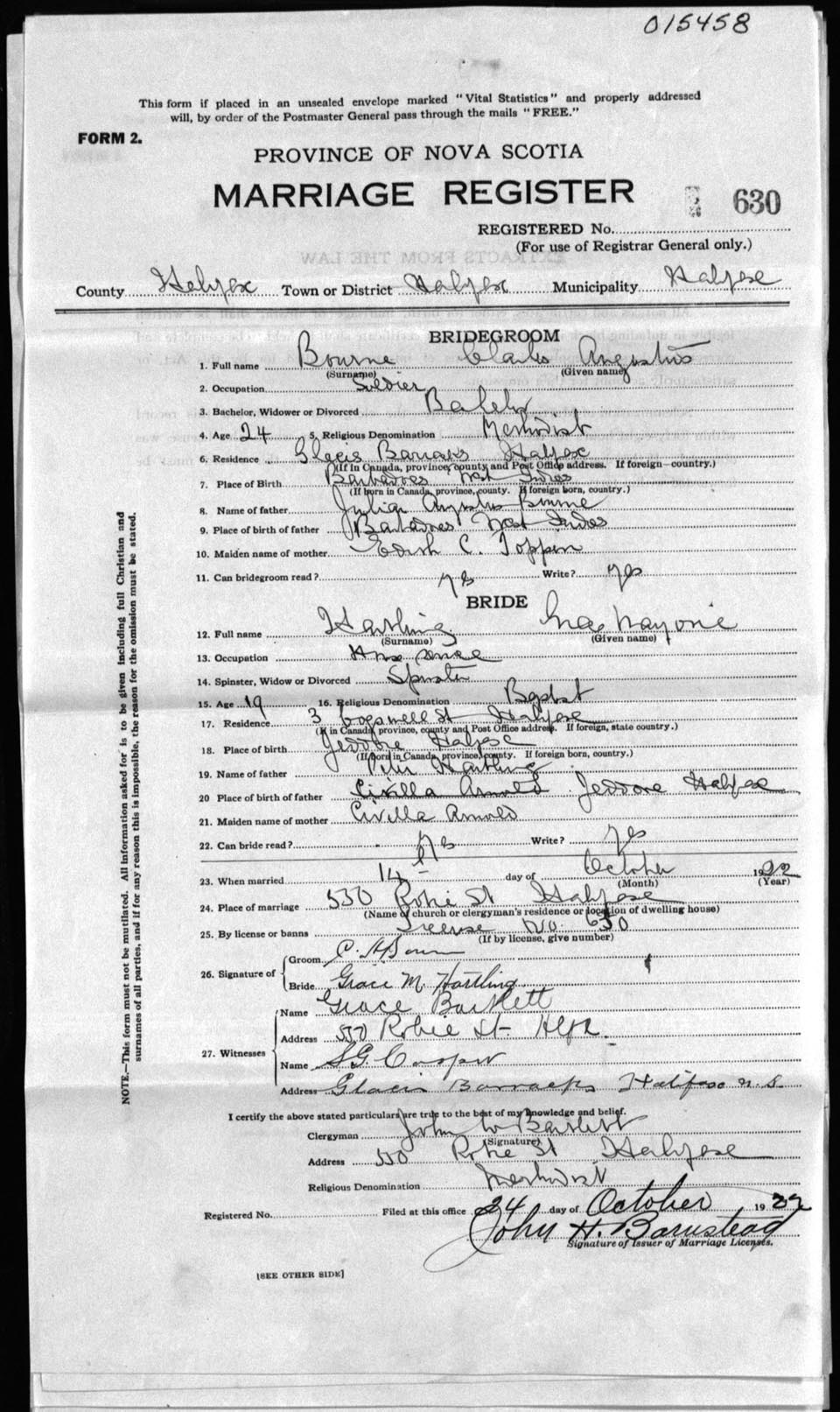 Registration: Year: 1922 number: 15458