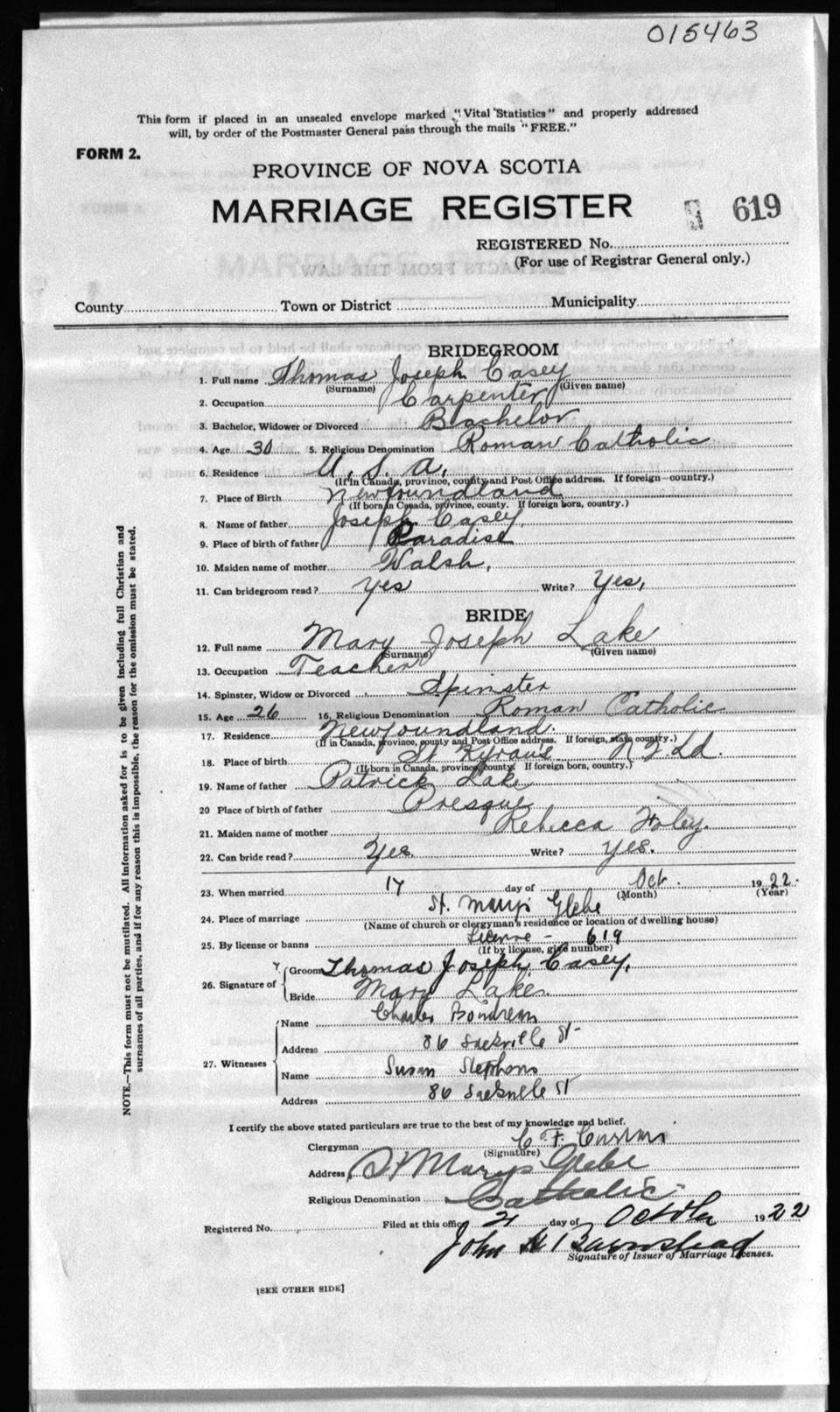 Registration: Year: 1922 number: 15463