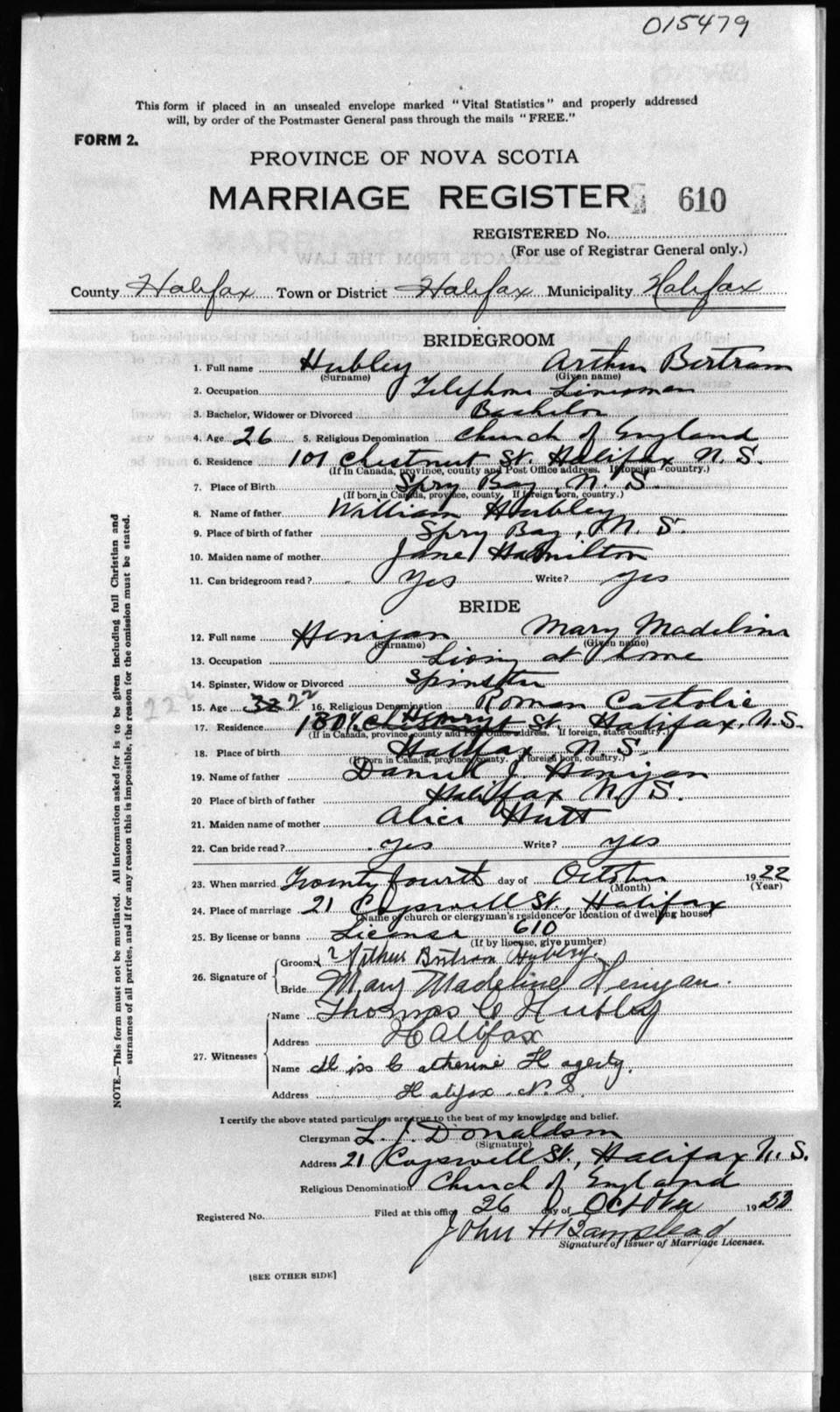 Registration: Year: 1922 number: 15479
