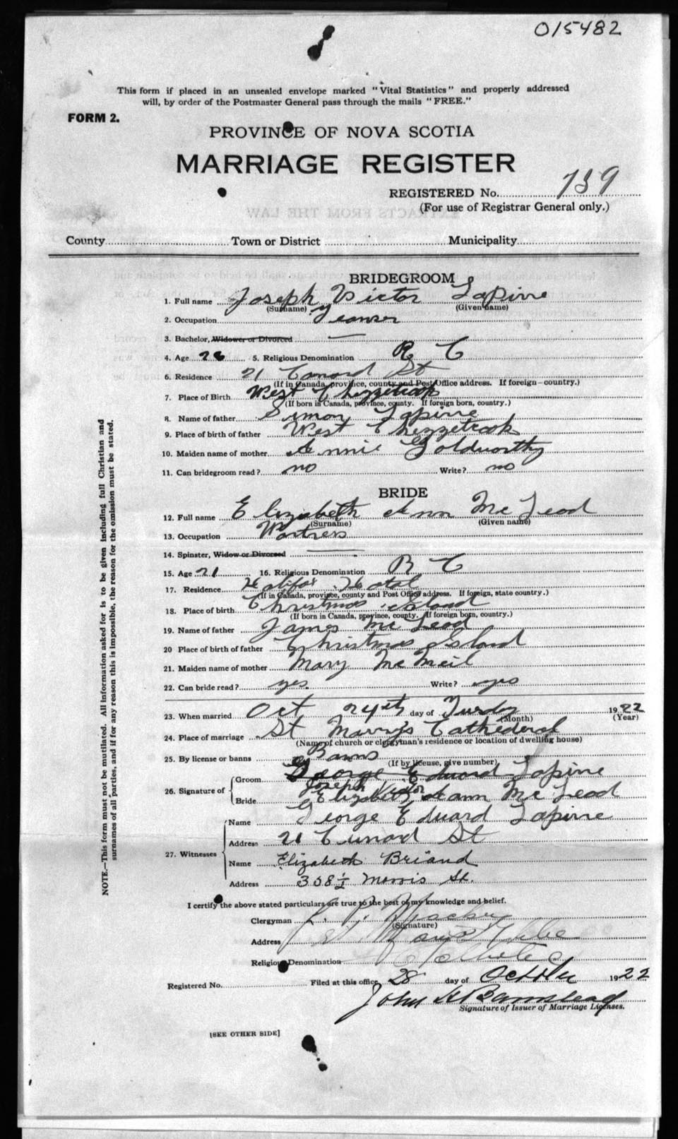 Registration: Year: 1922 number: 15482
