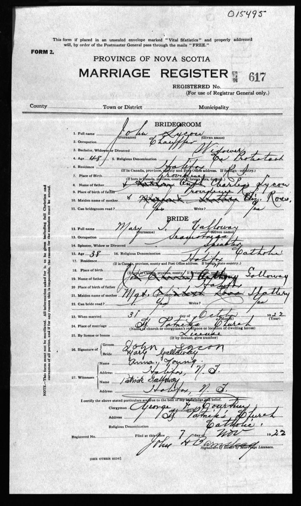 Registration: Year: 1922 number: 15495