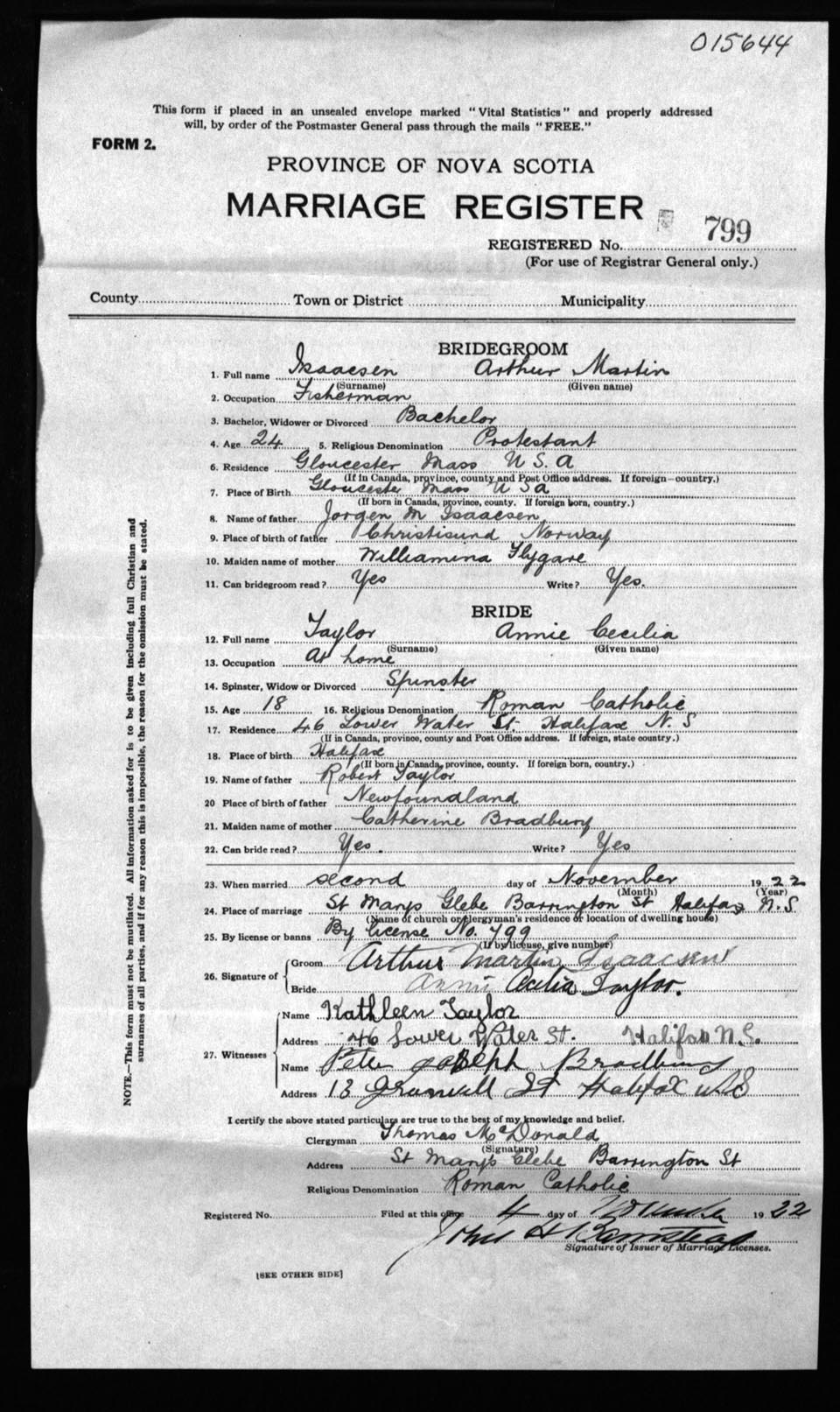 Registration: Year: 1922 number: 15644