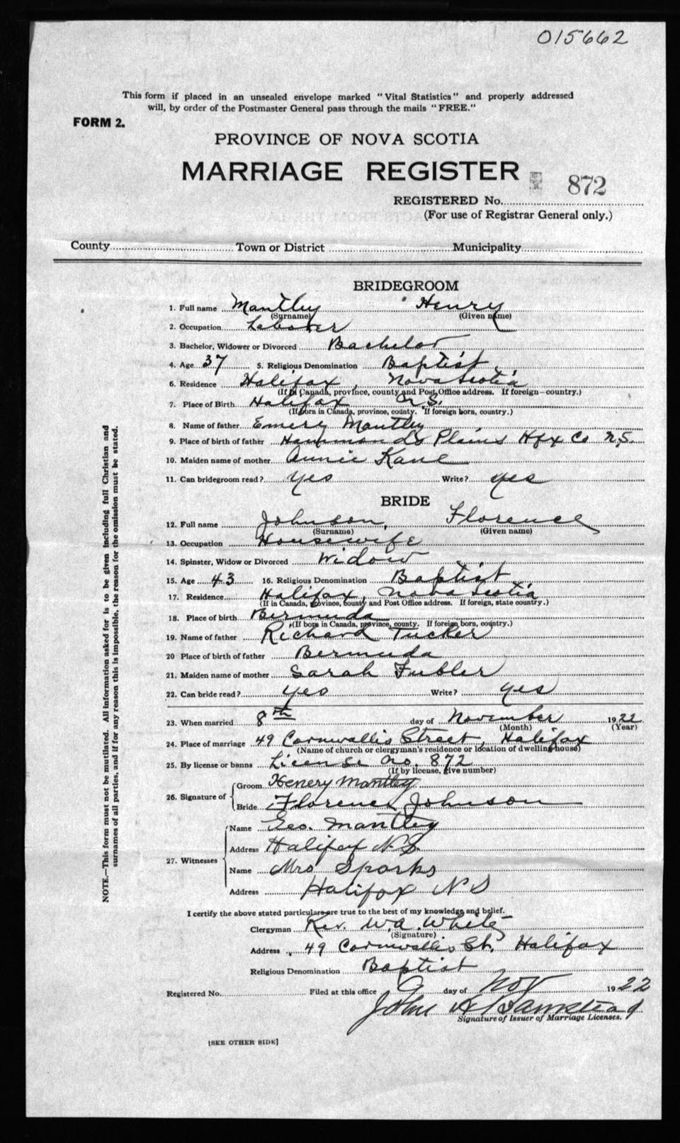 Registration: Year: 1922 number: 15662