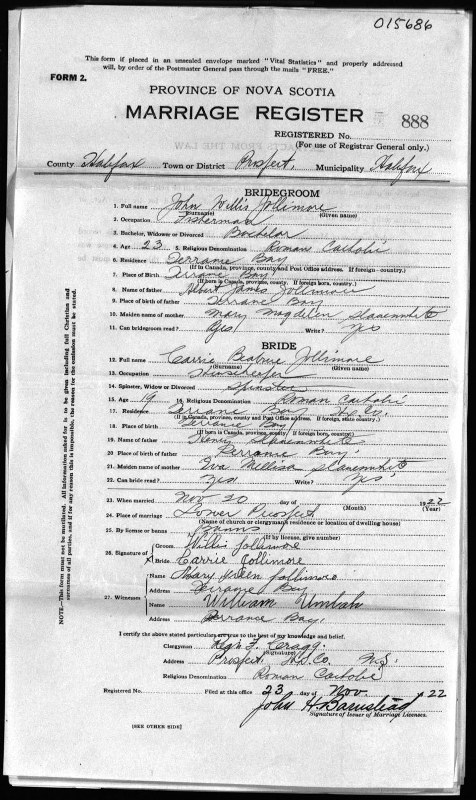 Registration: Year: 1922 number: 15686