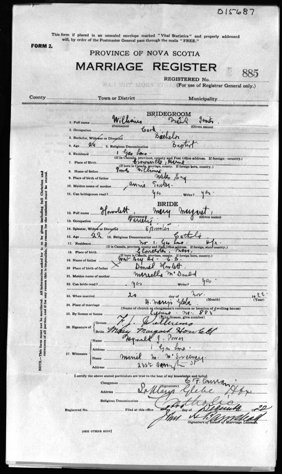 Registration: Year: 1922 number: 15687