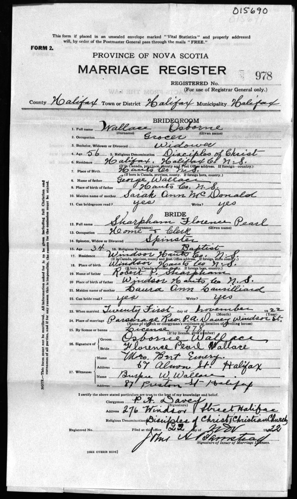 Registration: Year: 1922 number: 15690