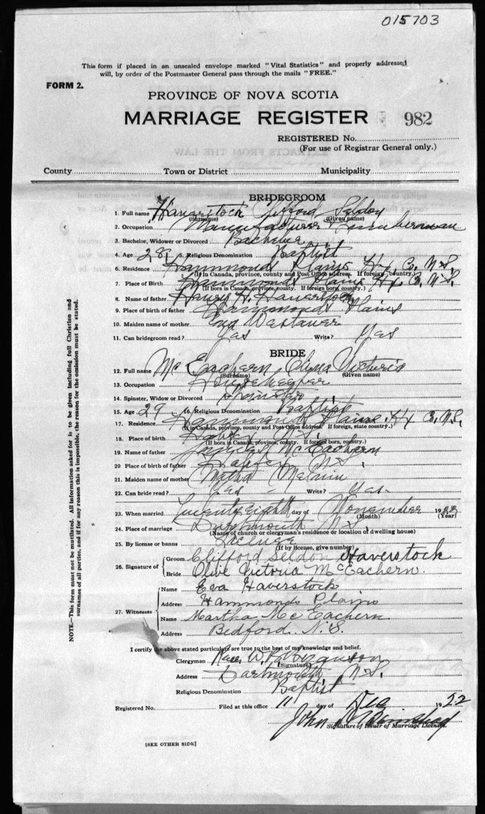 Registration: Year: 1922 number: 15703