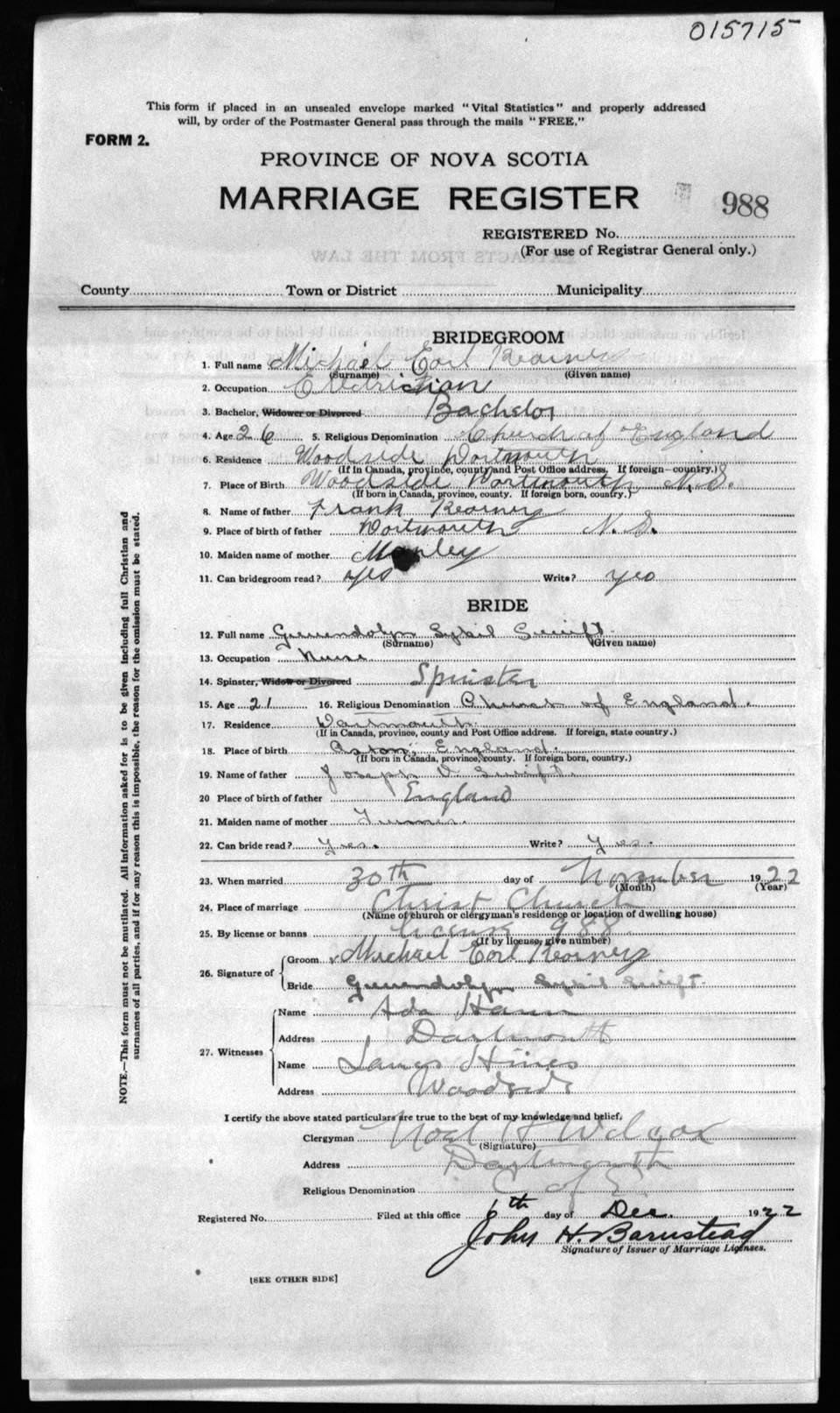 Registration: Year: 1922 number: 15715