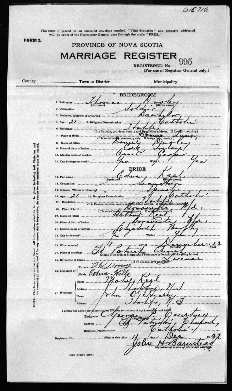Registration: Year: 1922 number: 15718