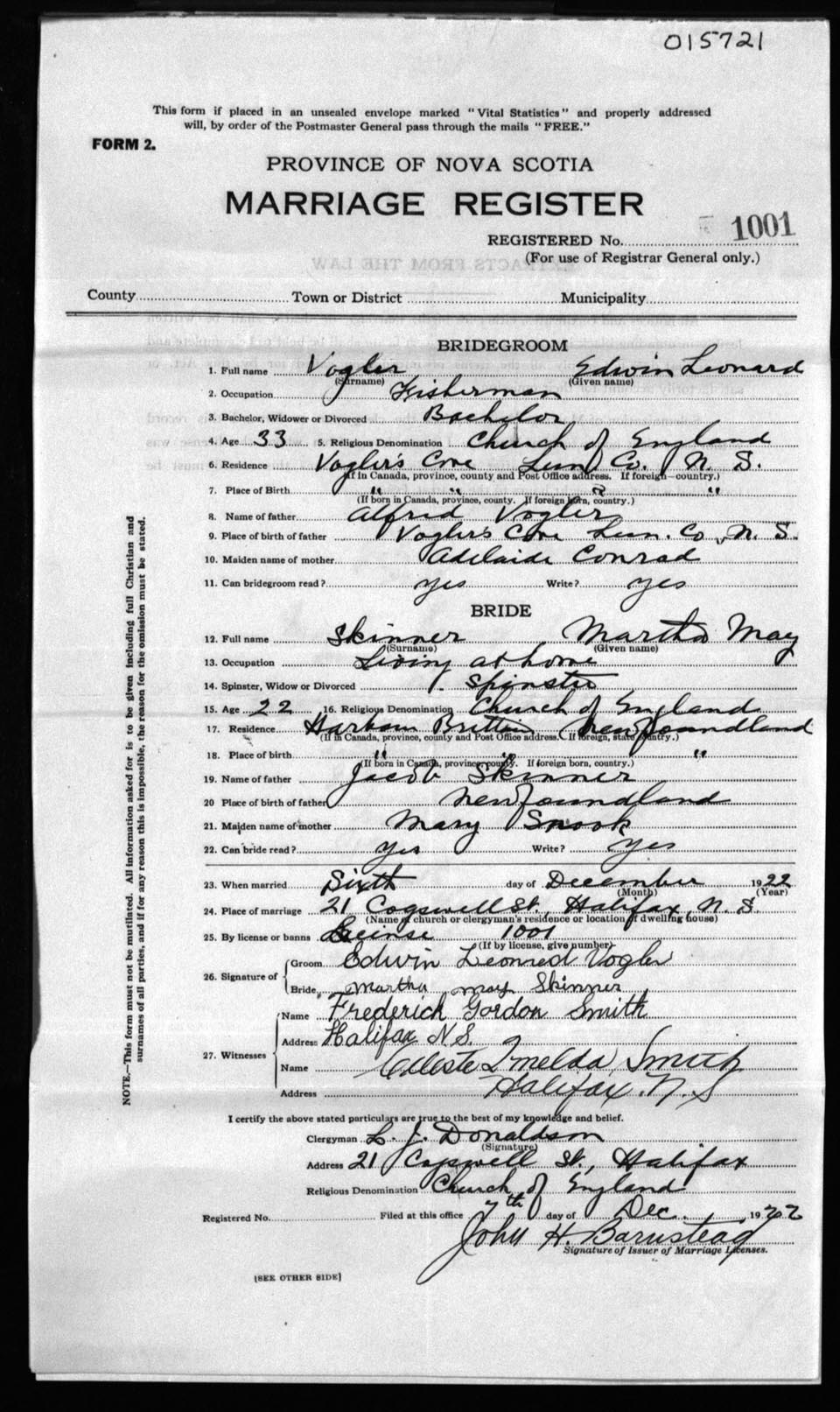 Registration: Year: 1922 number: 15721