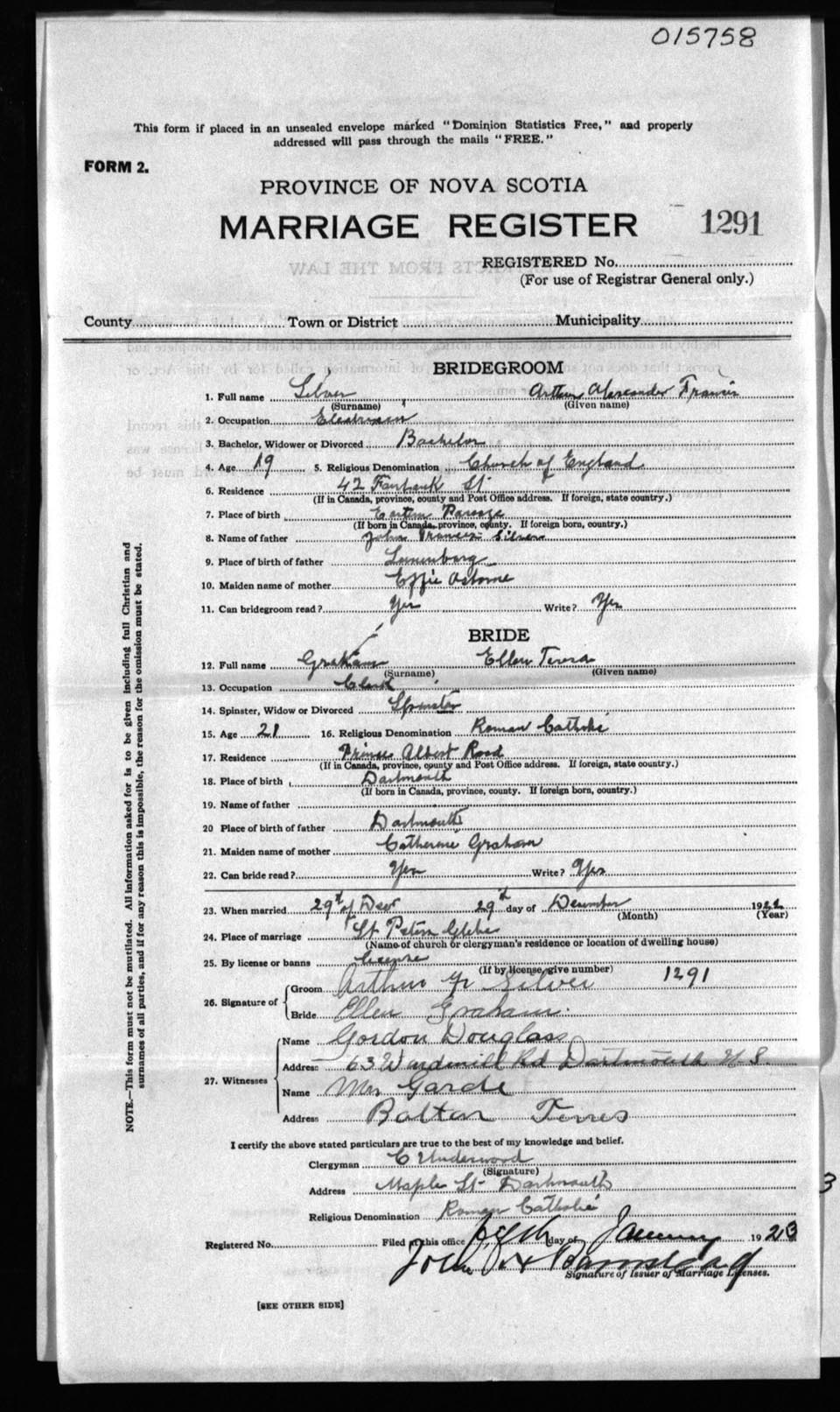 Registration: Year: 1922 number: 15758